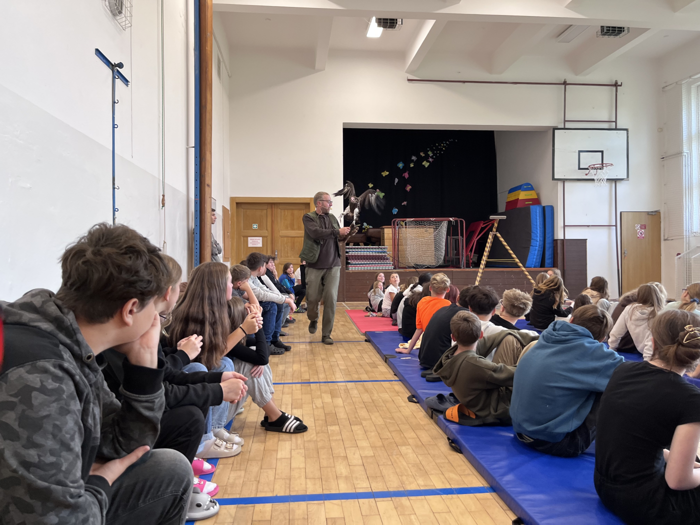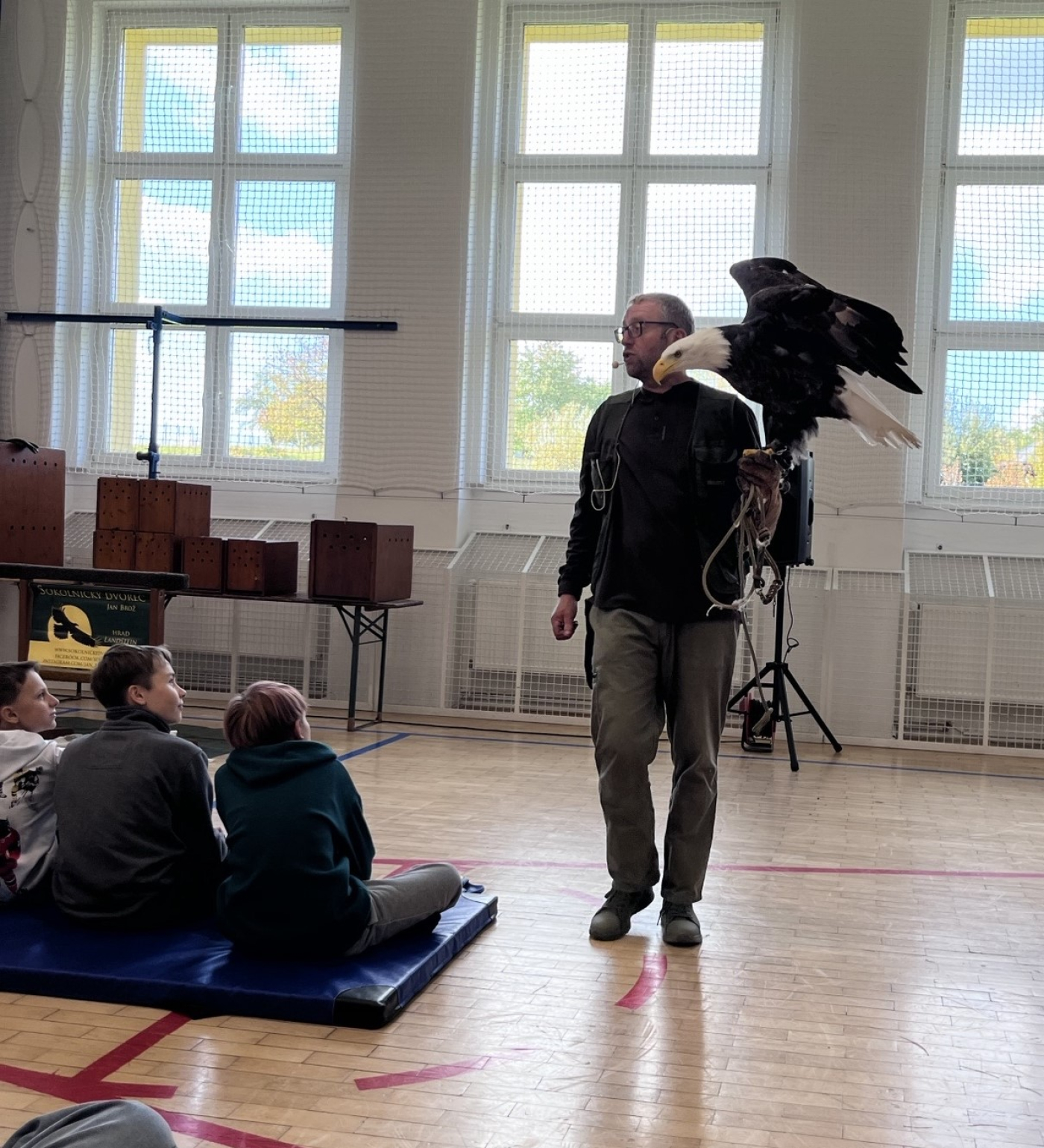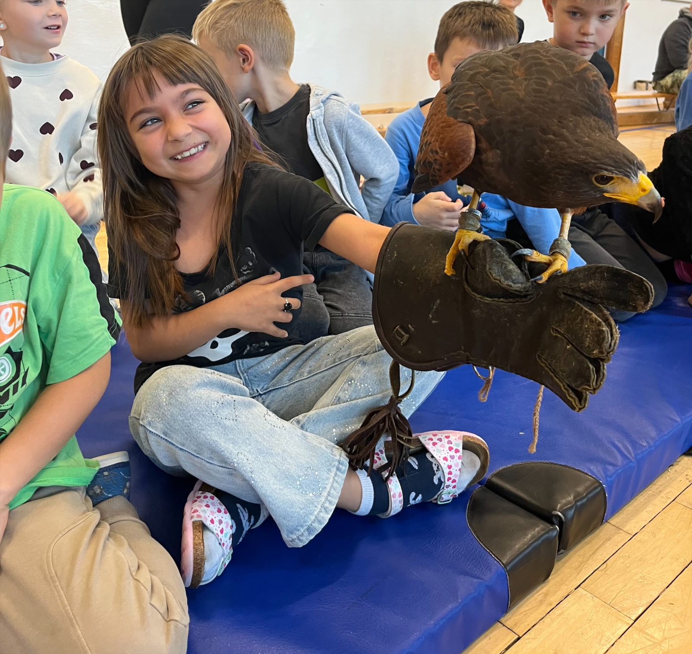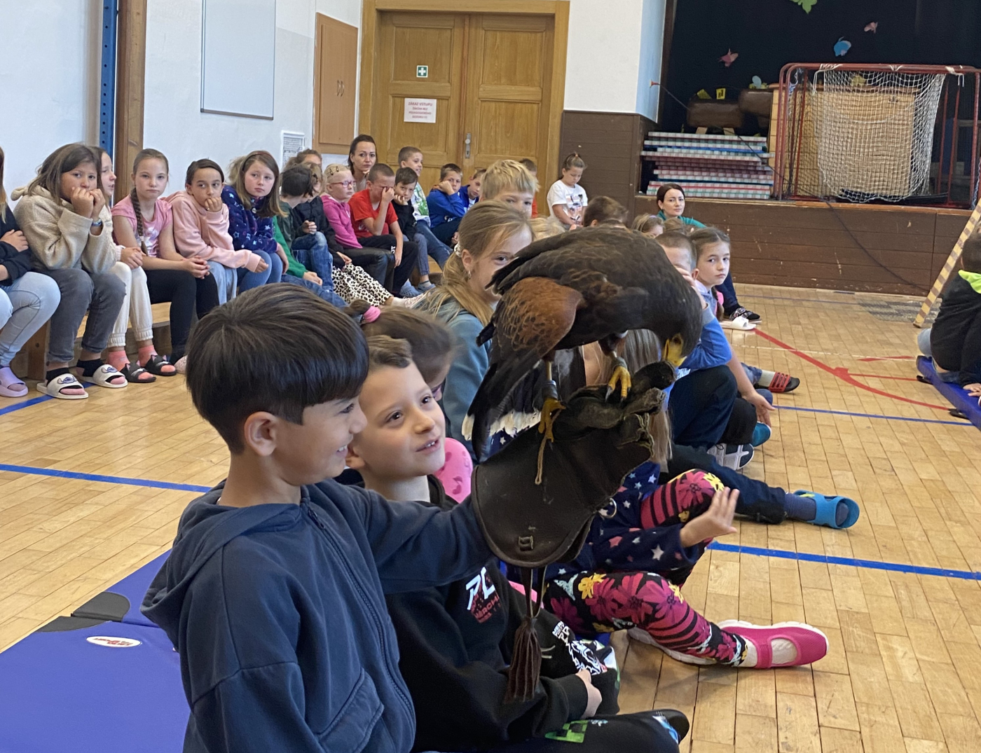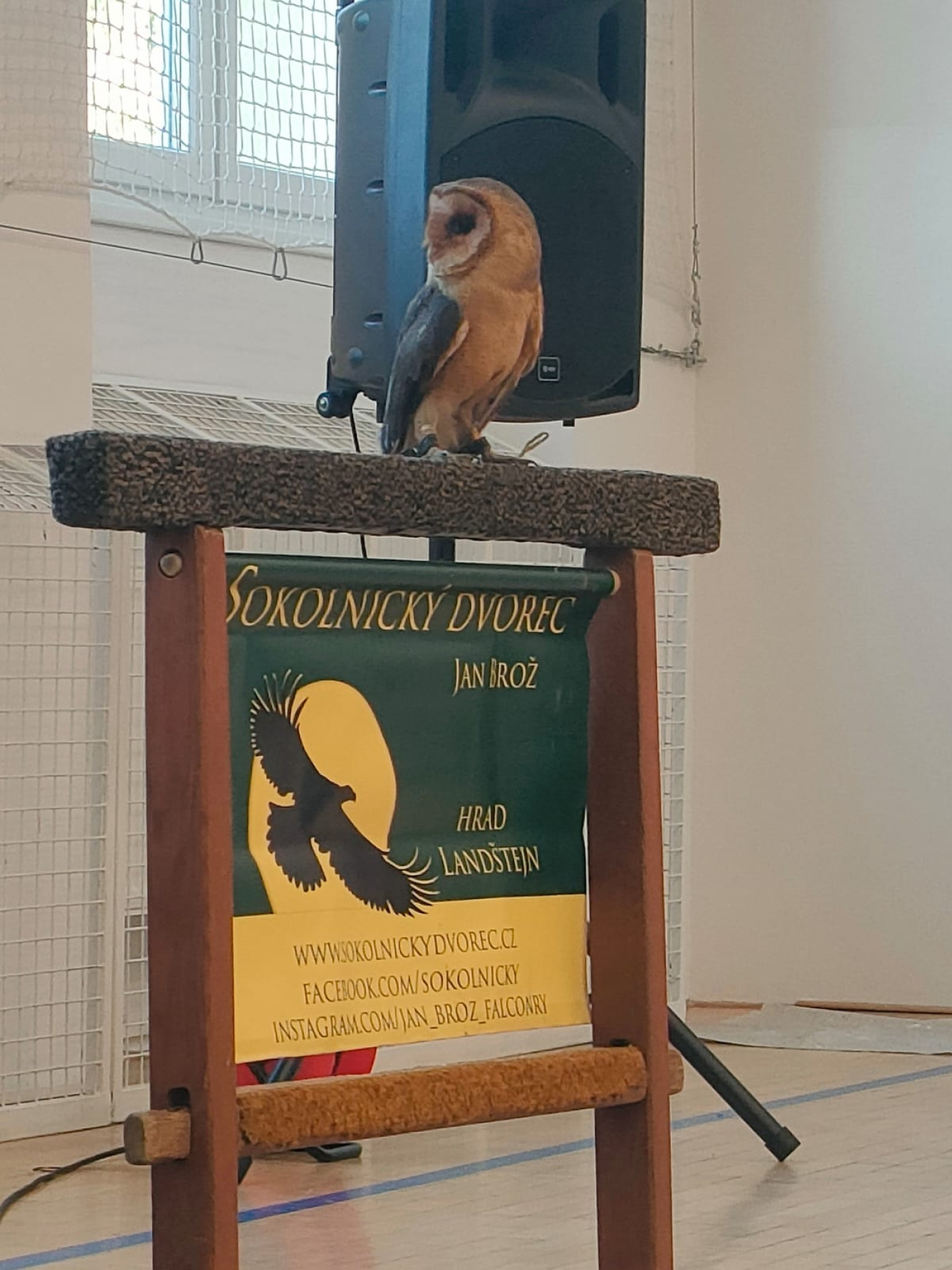 30. září přiletěli do naší tělocvičny dravci denní i noční. Výborné představení sov a dravců nám předvedl Sokolnický dvorec z hradu Landštejn. Nadšení je vidět v očích dětí i dospělých :)