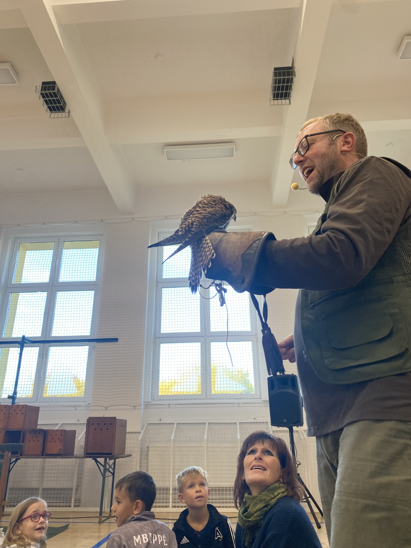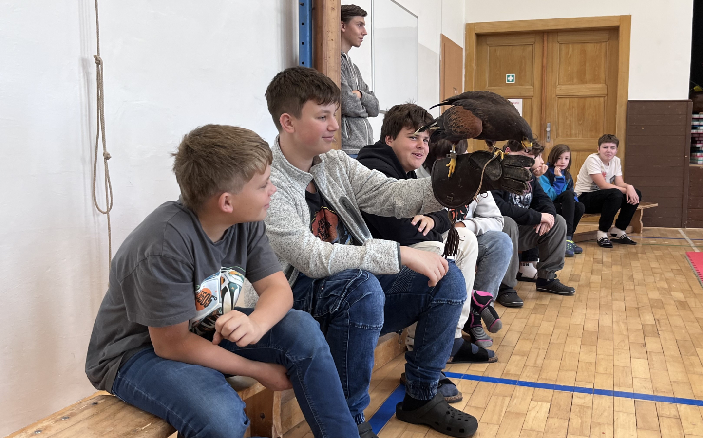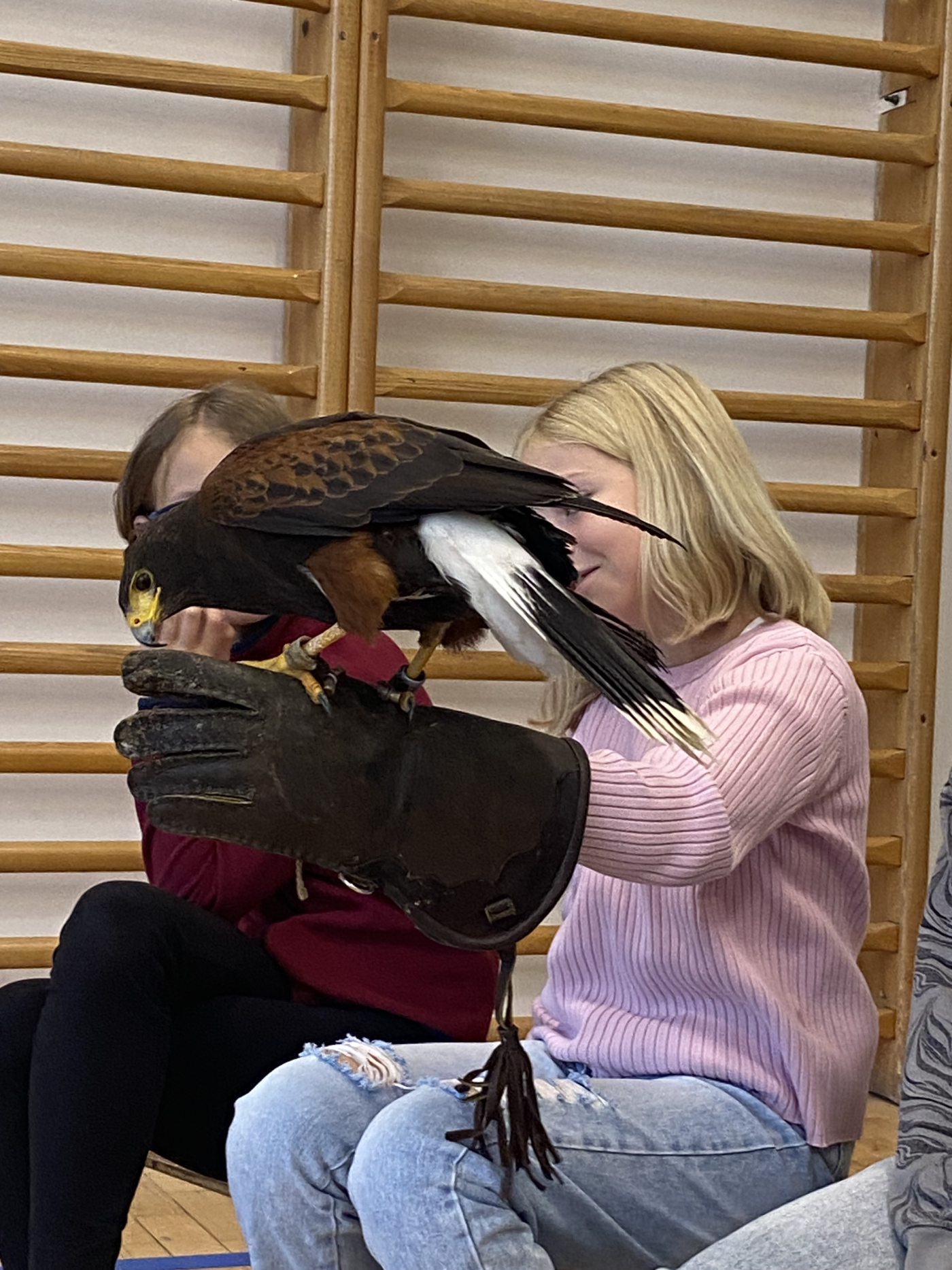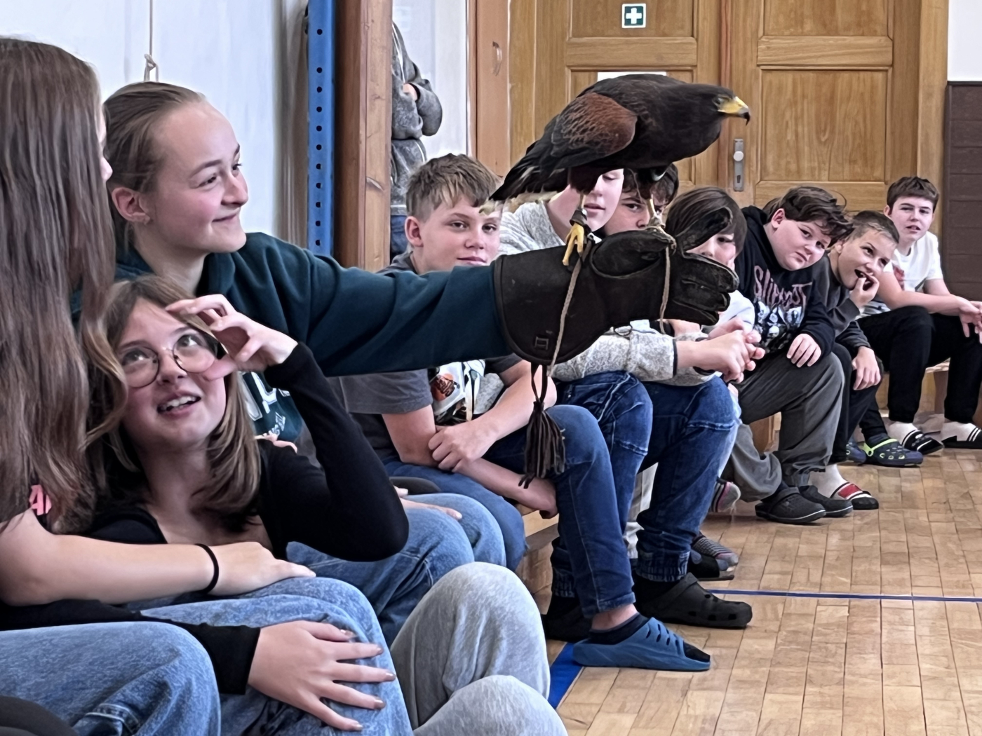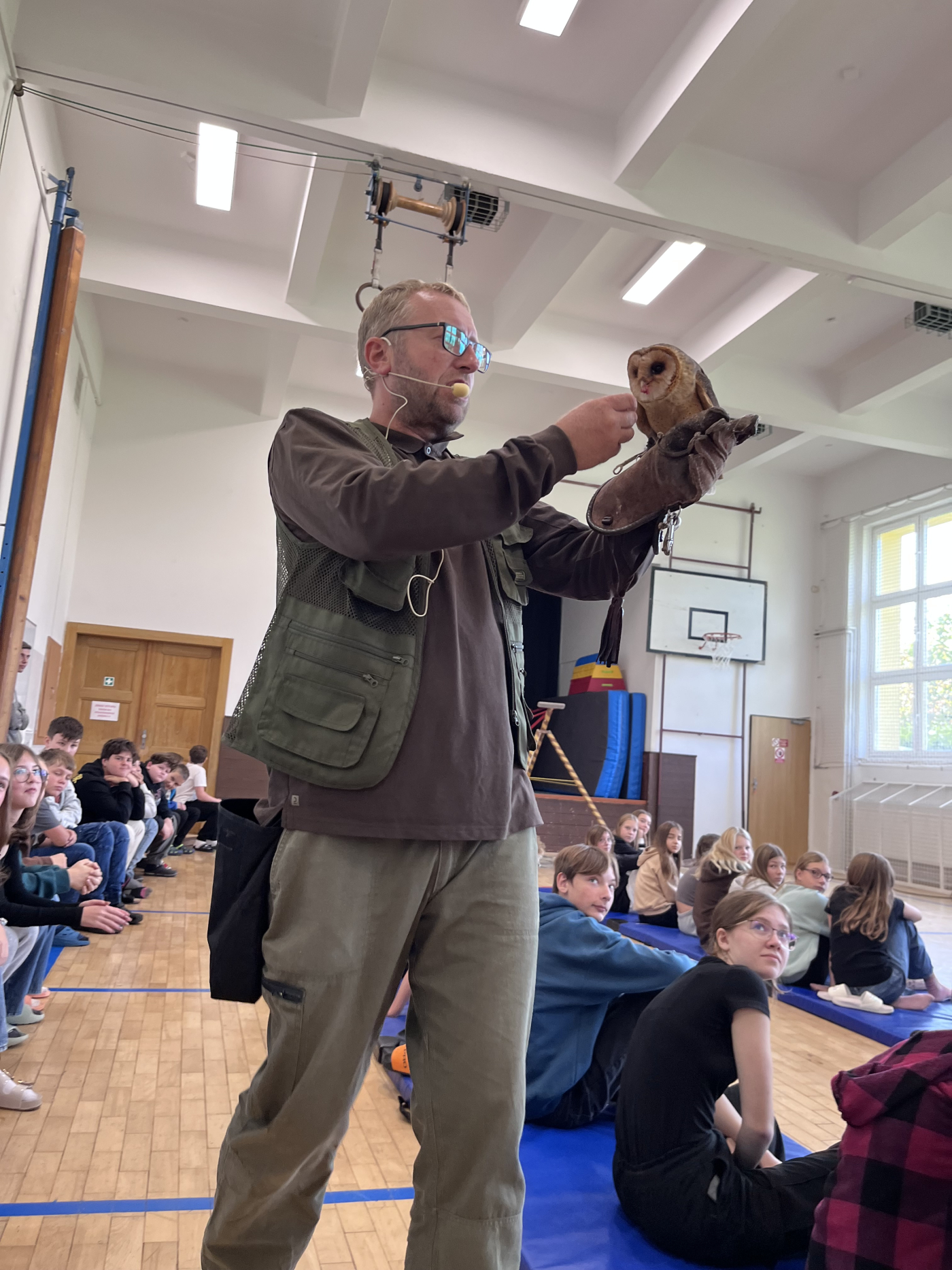 30. září přiletěli do naší tělocvičny dravci denní i noční. Výborné představení sov a dravců nám předvedl Sokolnický dvorec z hradu Landštejn. Nadšení je vidět v očích dětí i dospělých :)