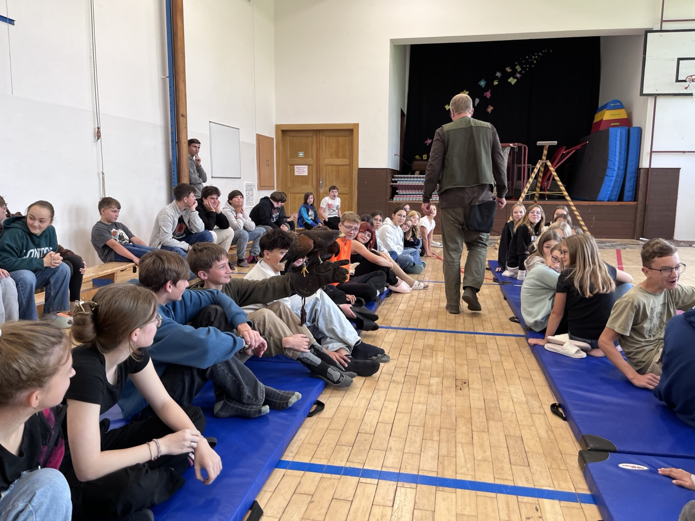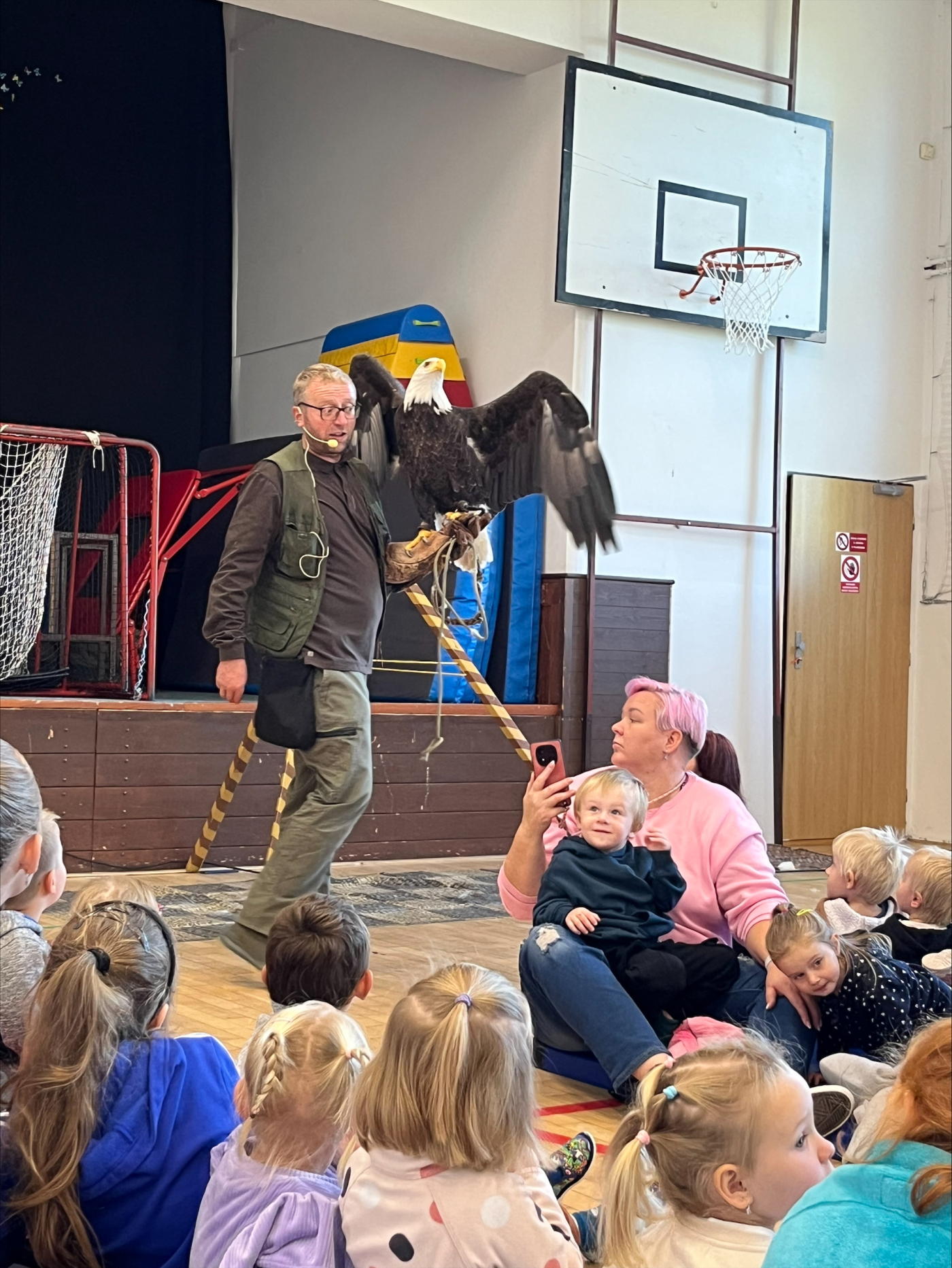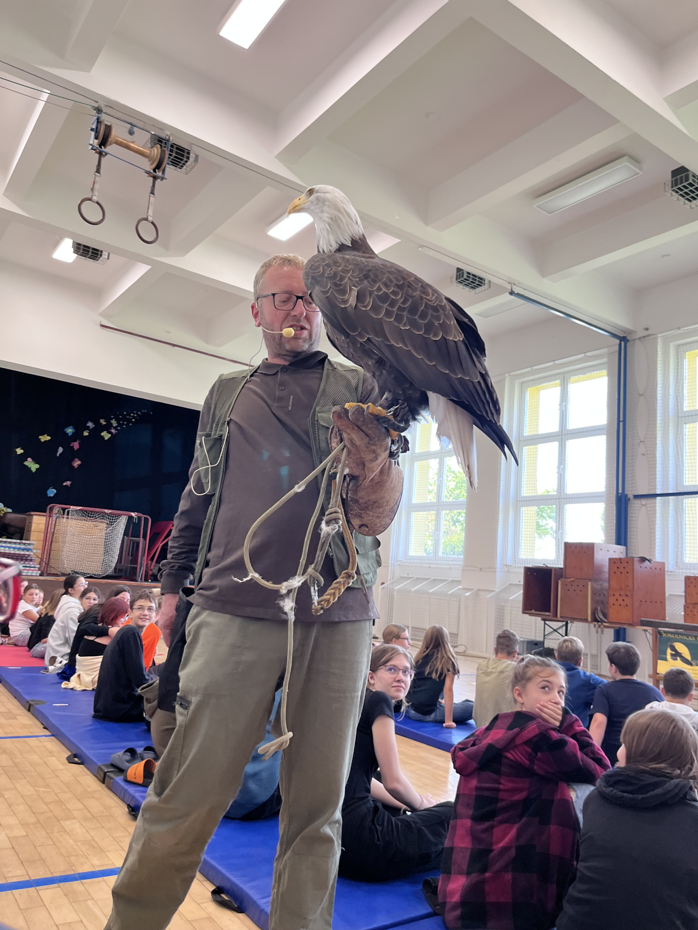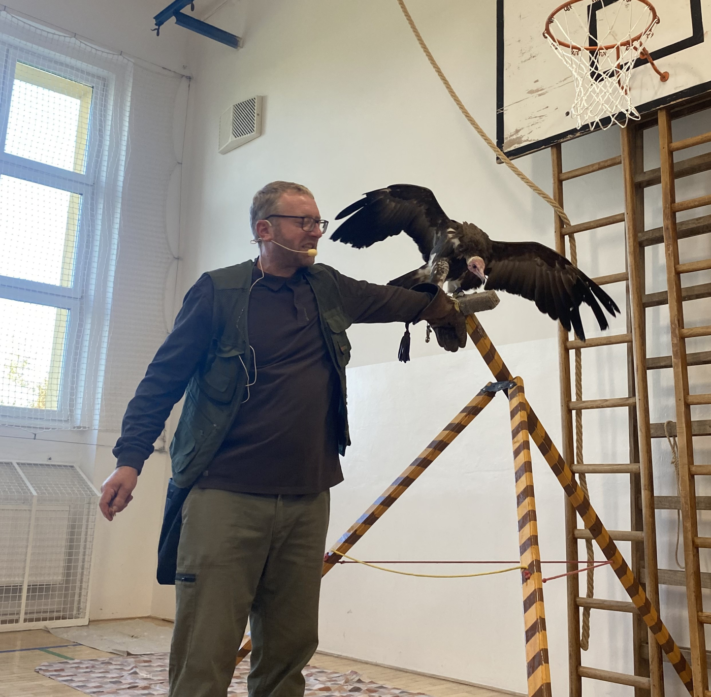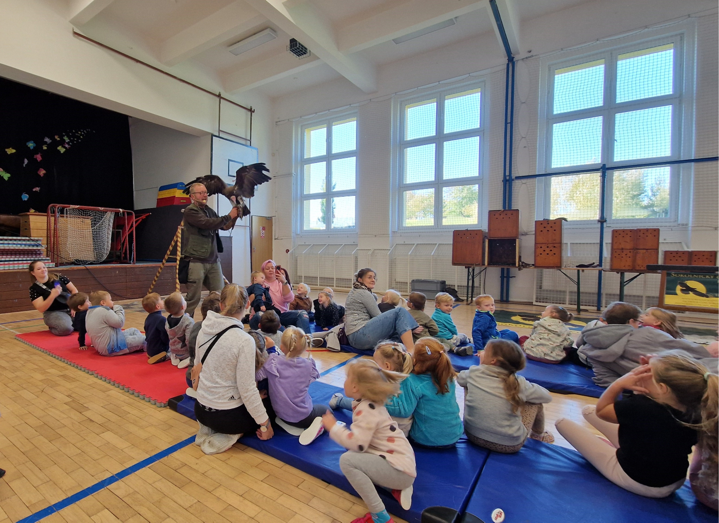 30. září přiletěli do naší tělocvičny dravci denní i noční. Výborné představení sov a dravců nám předvedl Sokolnický dvorec z hradu Landštejn. Nadšení je vidět v očích dětí i dospělých :)