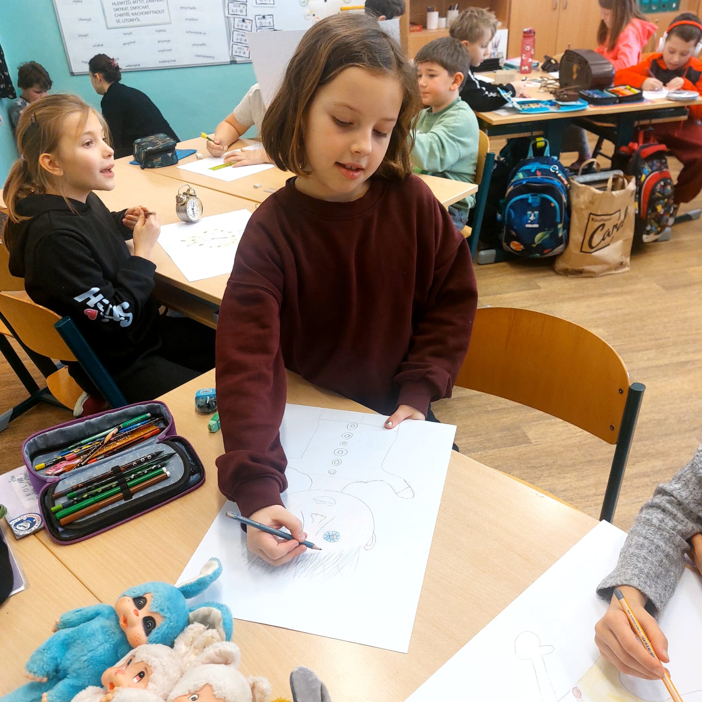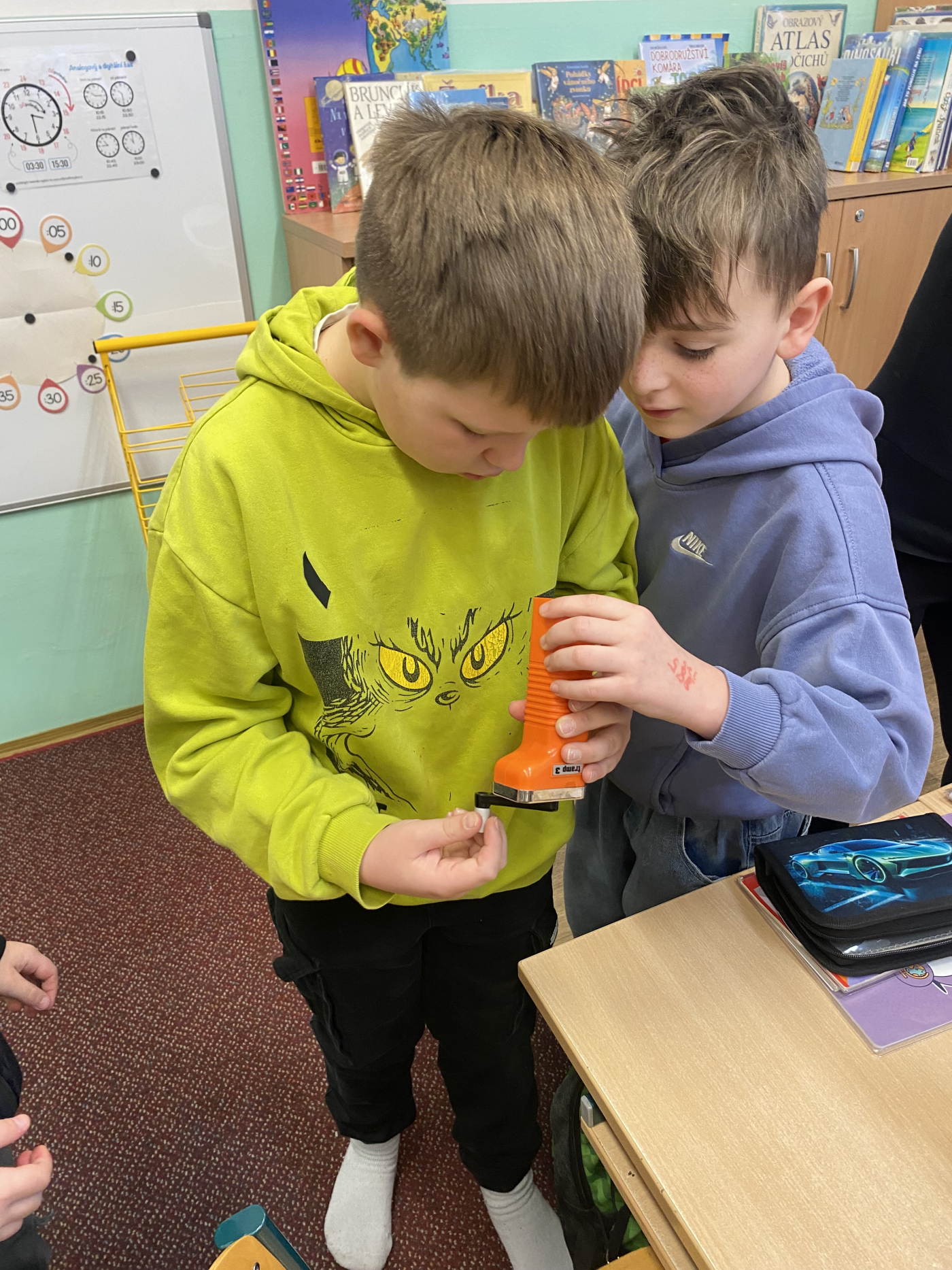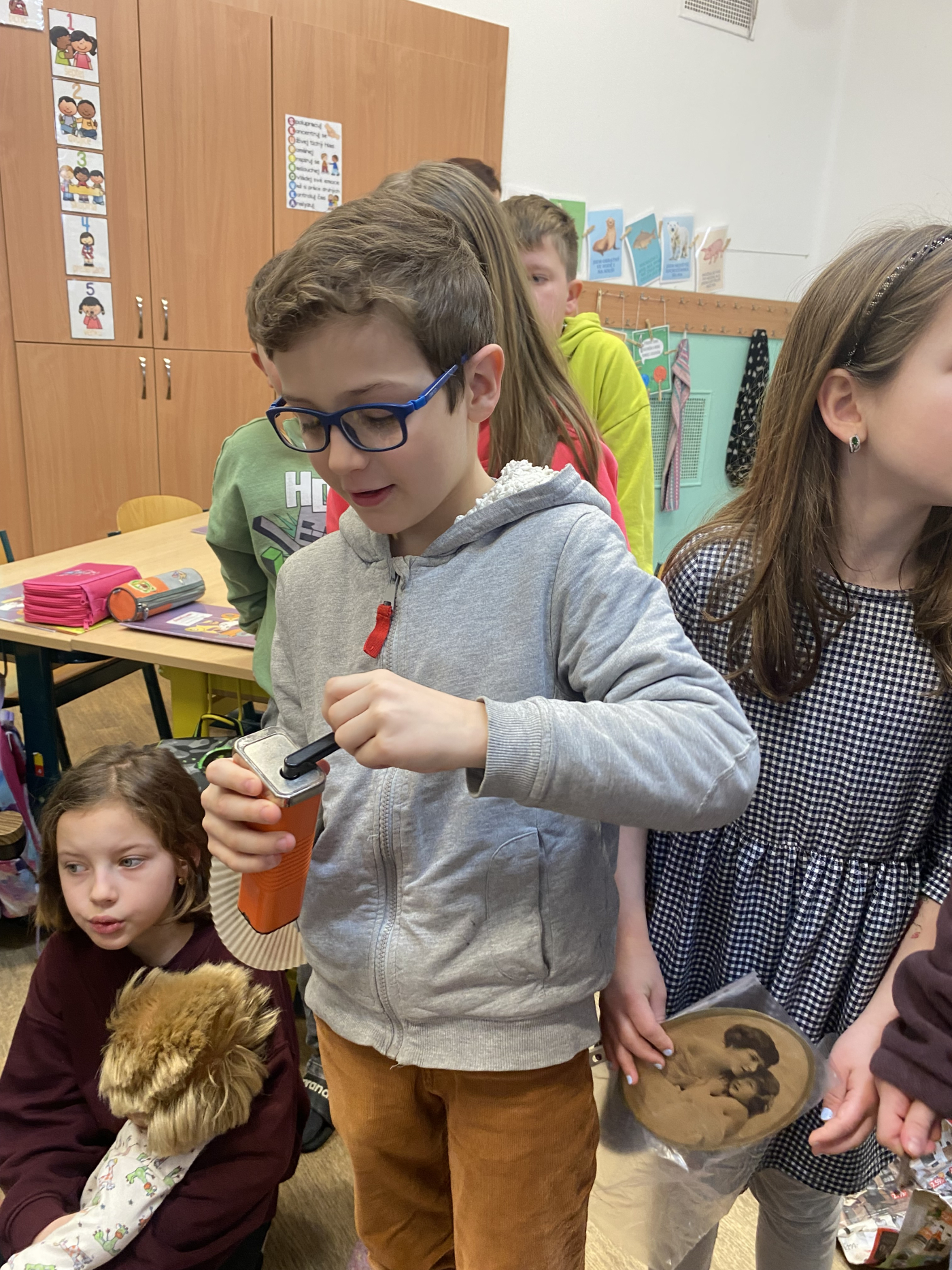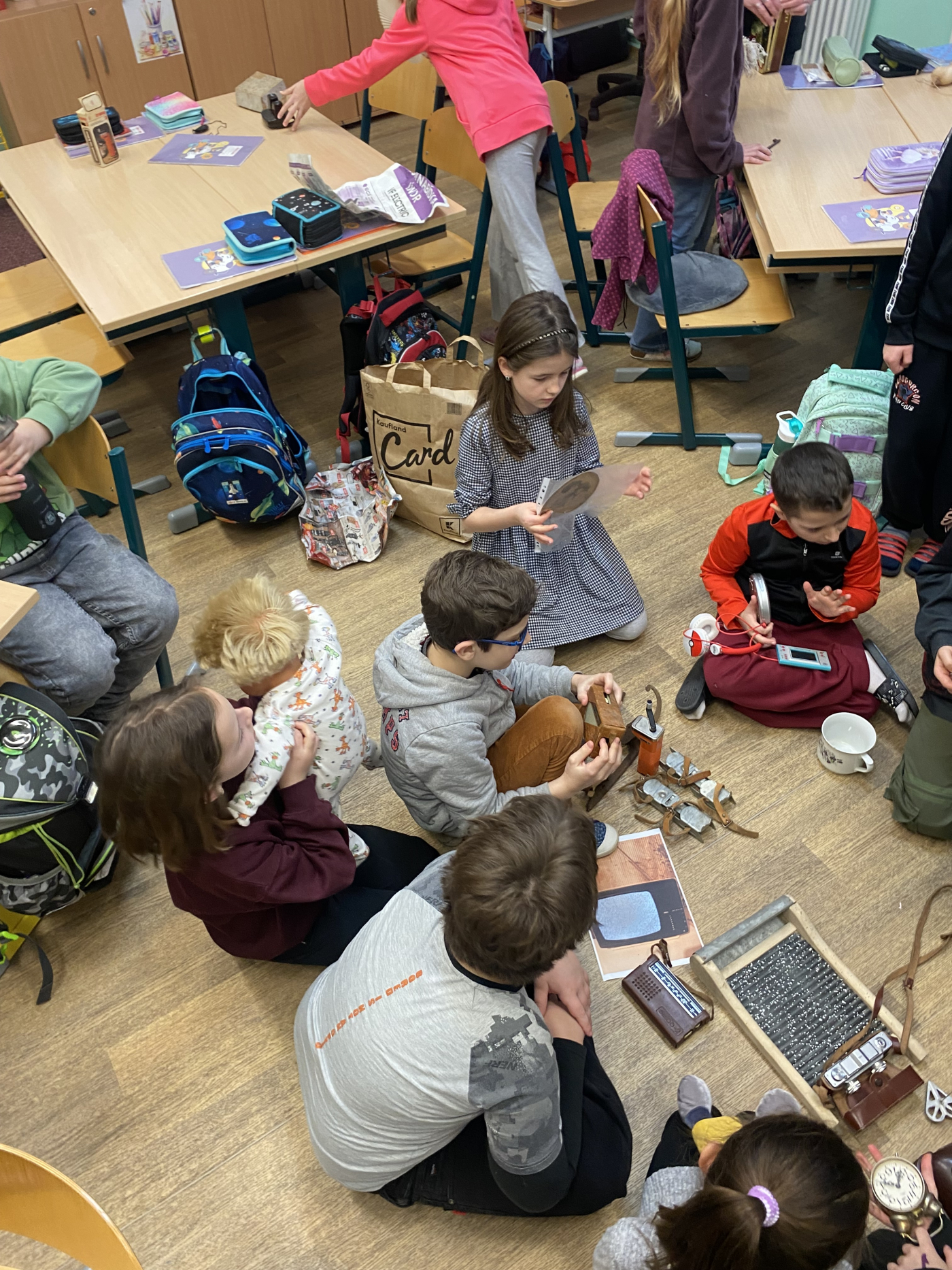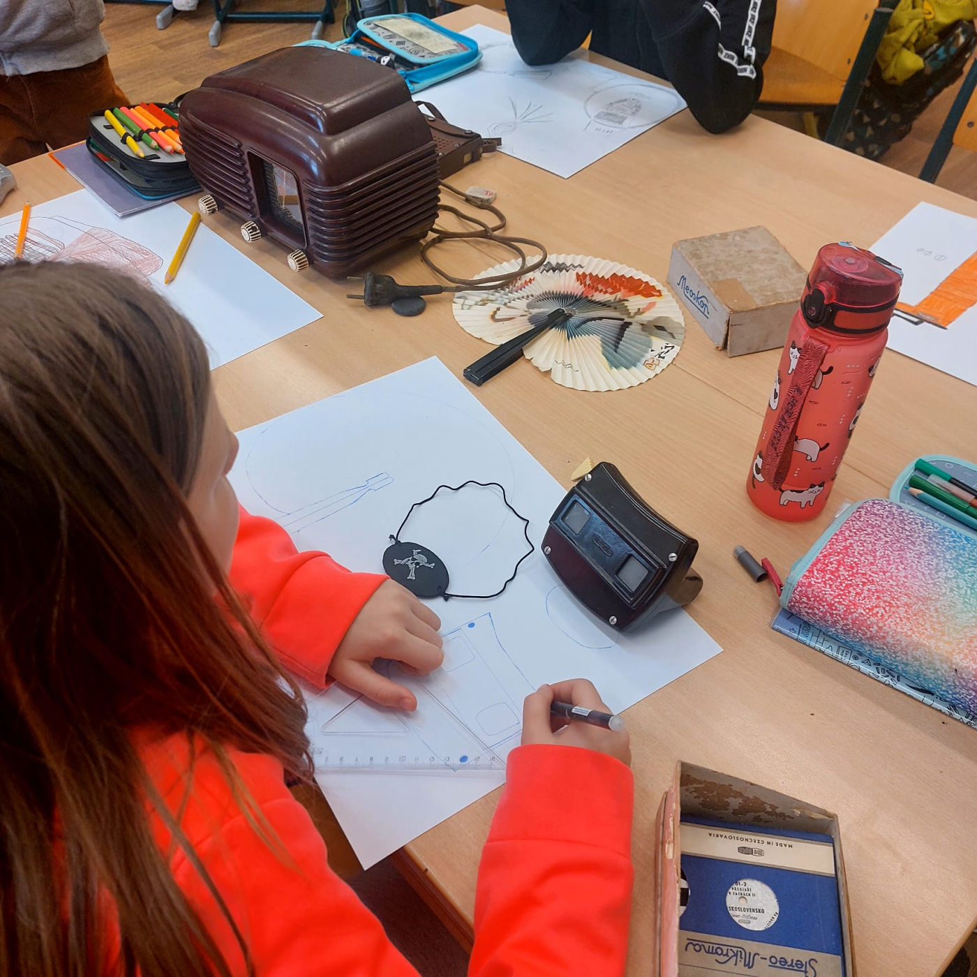 Na začátku března jsme se ve 3. třídě věnovali tématu minulost – přítomnost – budoucnost. Děti si do školy přinesly staré předměty z domova, o kterých vyprávěly svým spolužákům. V hodině českého jazyka každý napsal krátké informace o svém předmětu – co je to za předmět, komu patřil nebo k čemu sloužil. Svůj předmět také nakreslily.