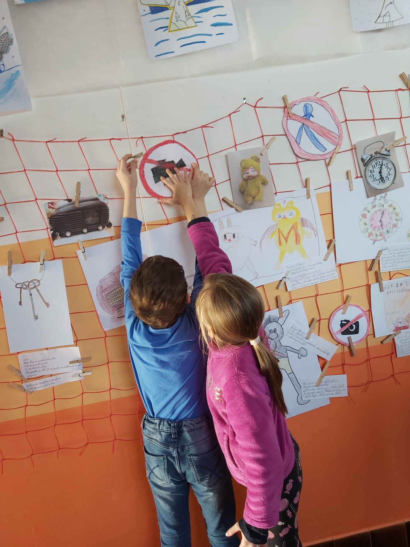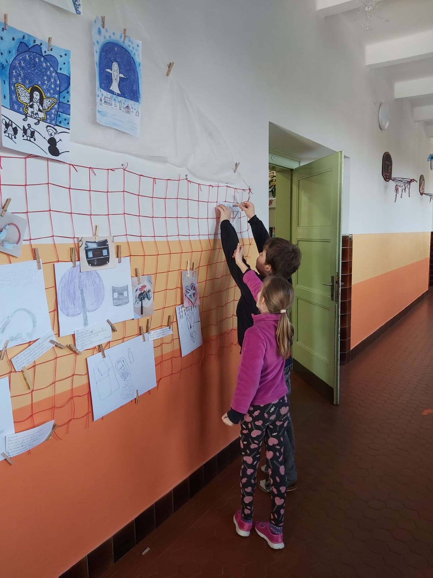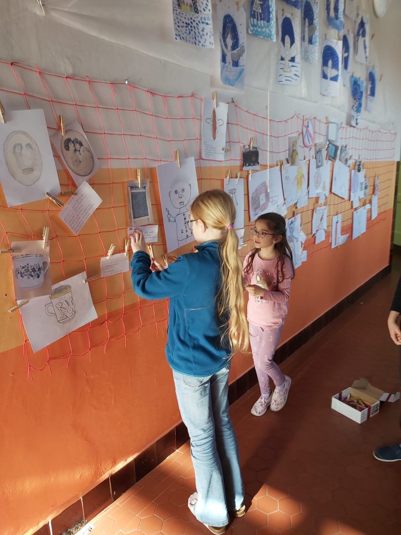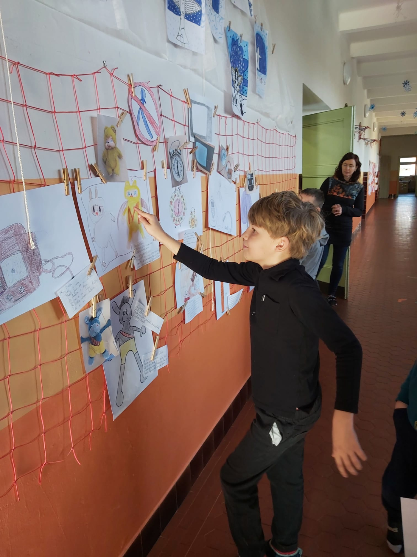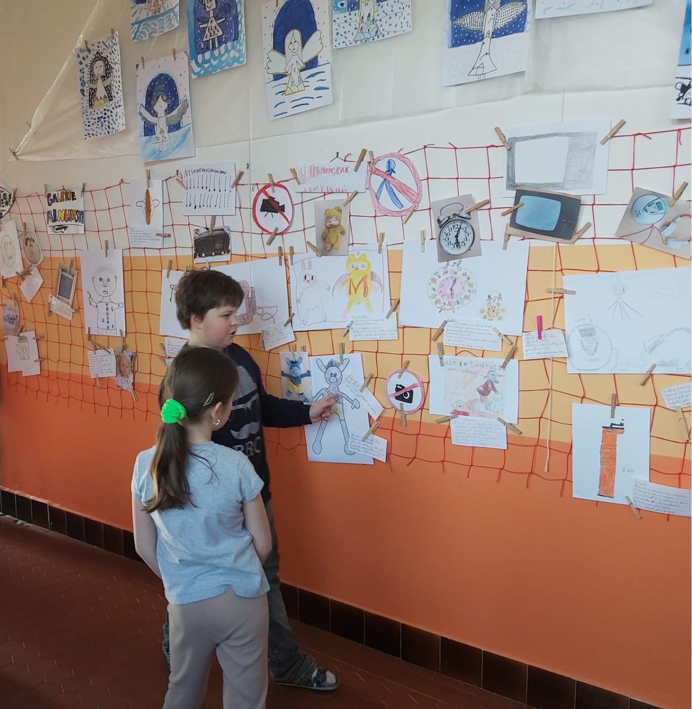 Z výtvarných prací a popisků jsme společně vytvořili malou výstavu s názvem Galerie minulosti. Na chodbě tak vznikla zajímavá expozice, která lákala k prohlídce všechny kolemjdoucí.