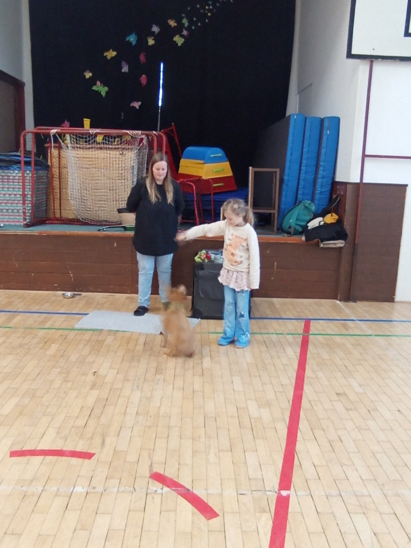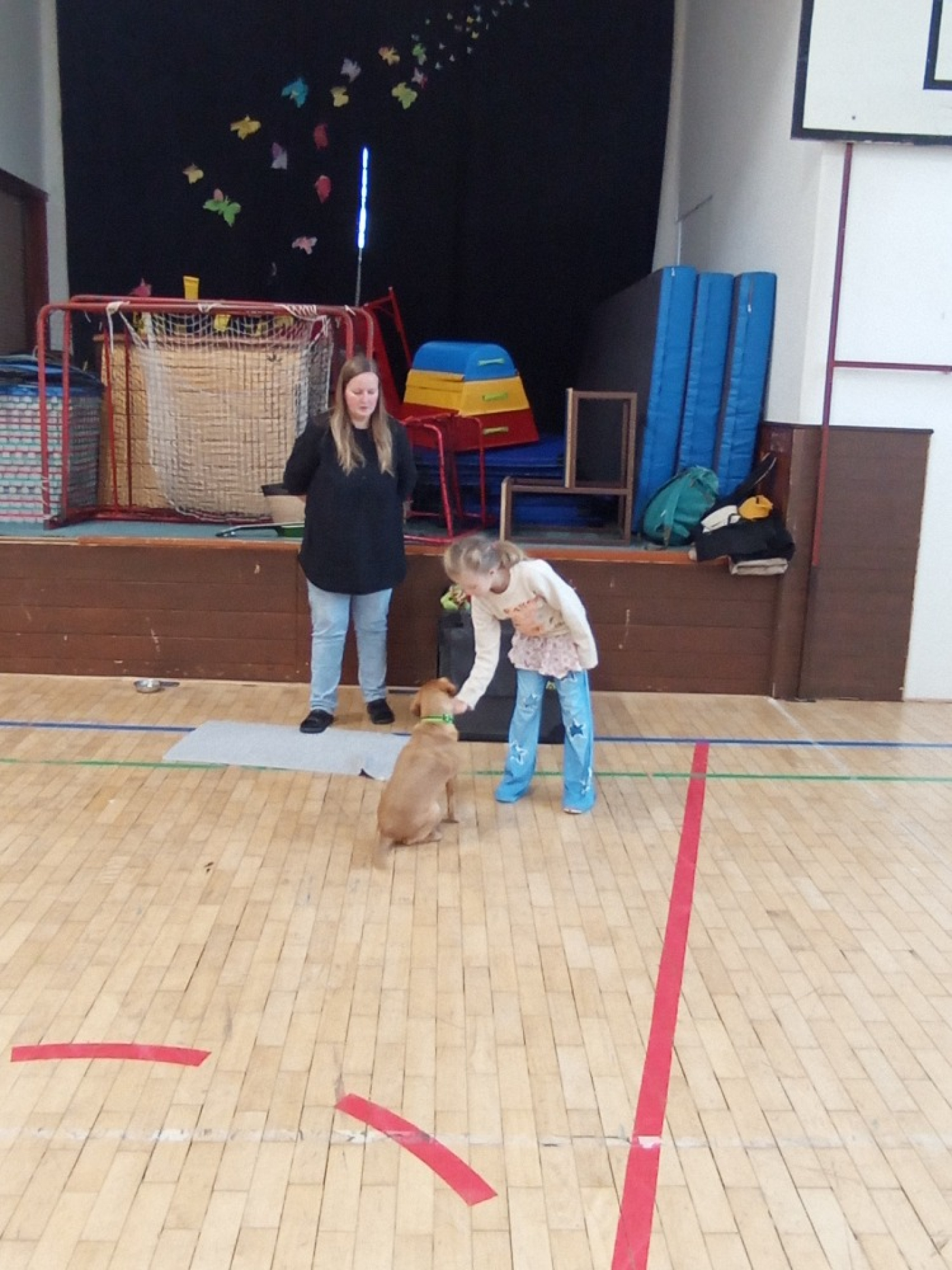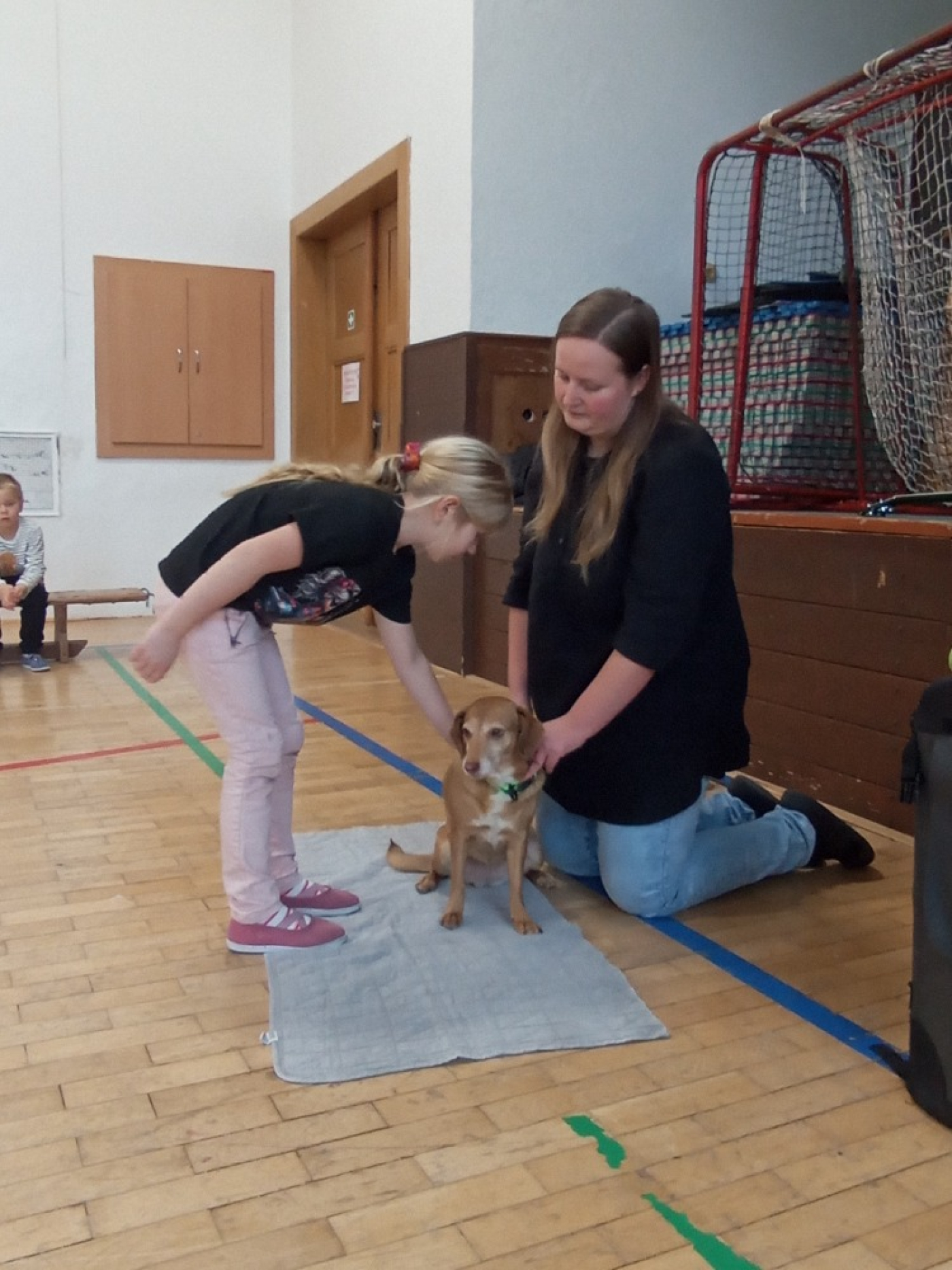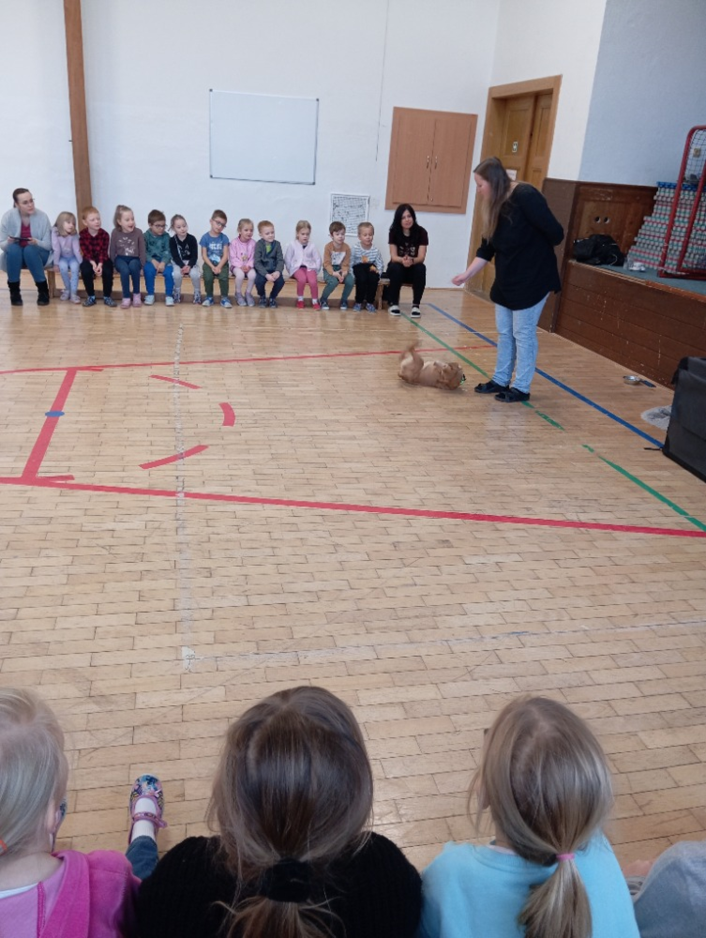 Druhá část programu patřila malé fence, která se jmenovala Terezka. Ukázala nám, co vše umí a na závěr si s ní děti mohly vyzkoušet základní povely. Za odměnu dostaly všechny děti malý dáreček – psí tlapku. Děkujeme za milou návštěvu!