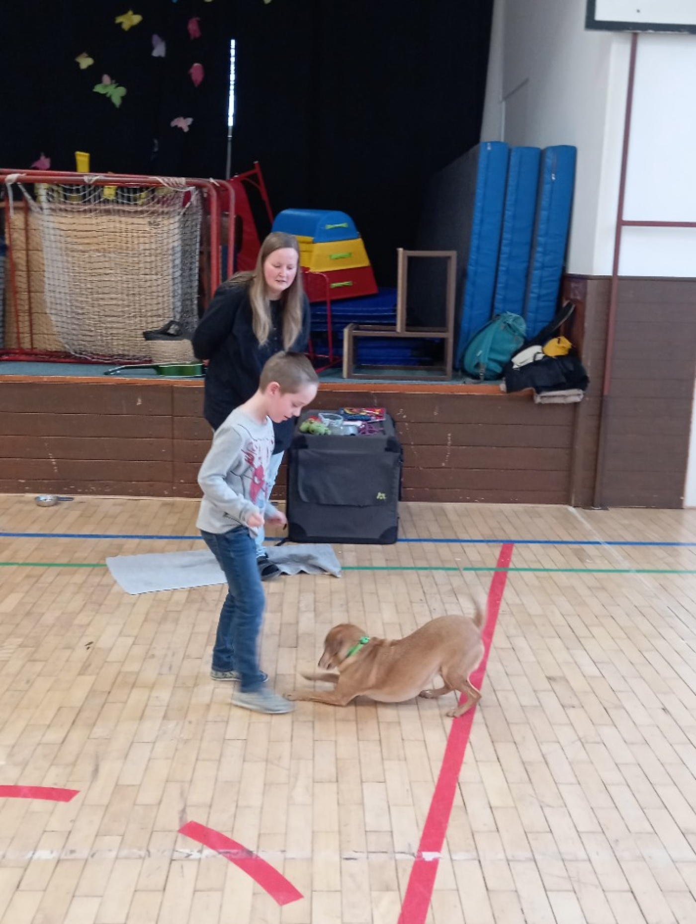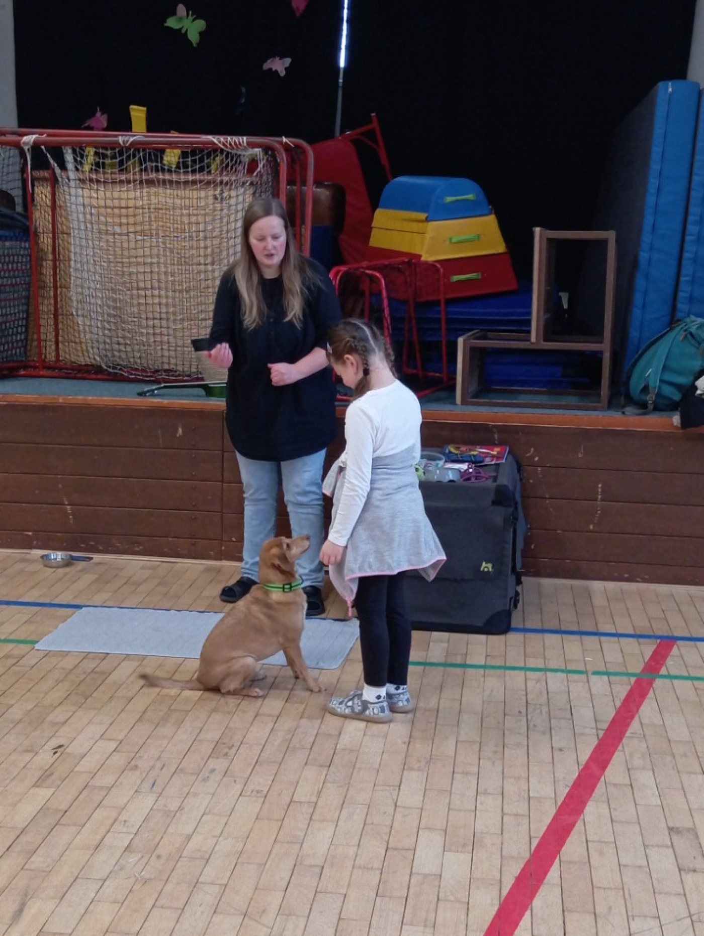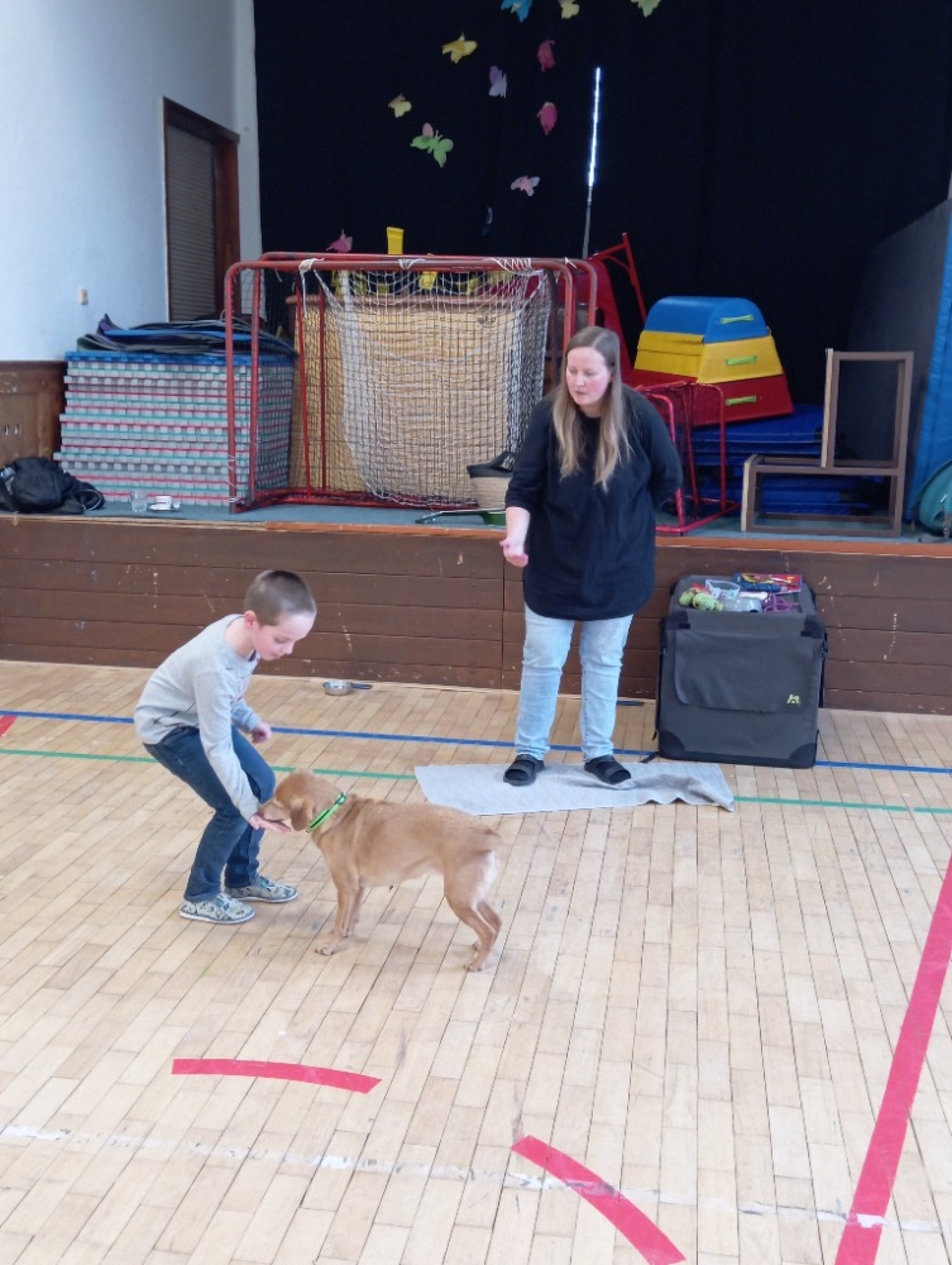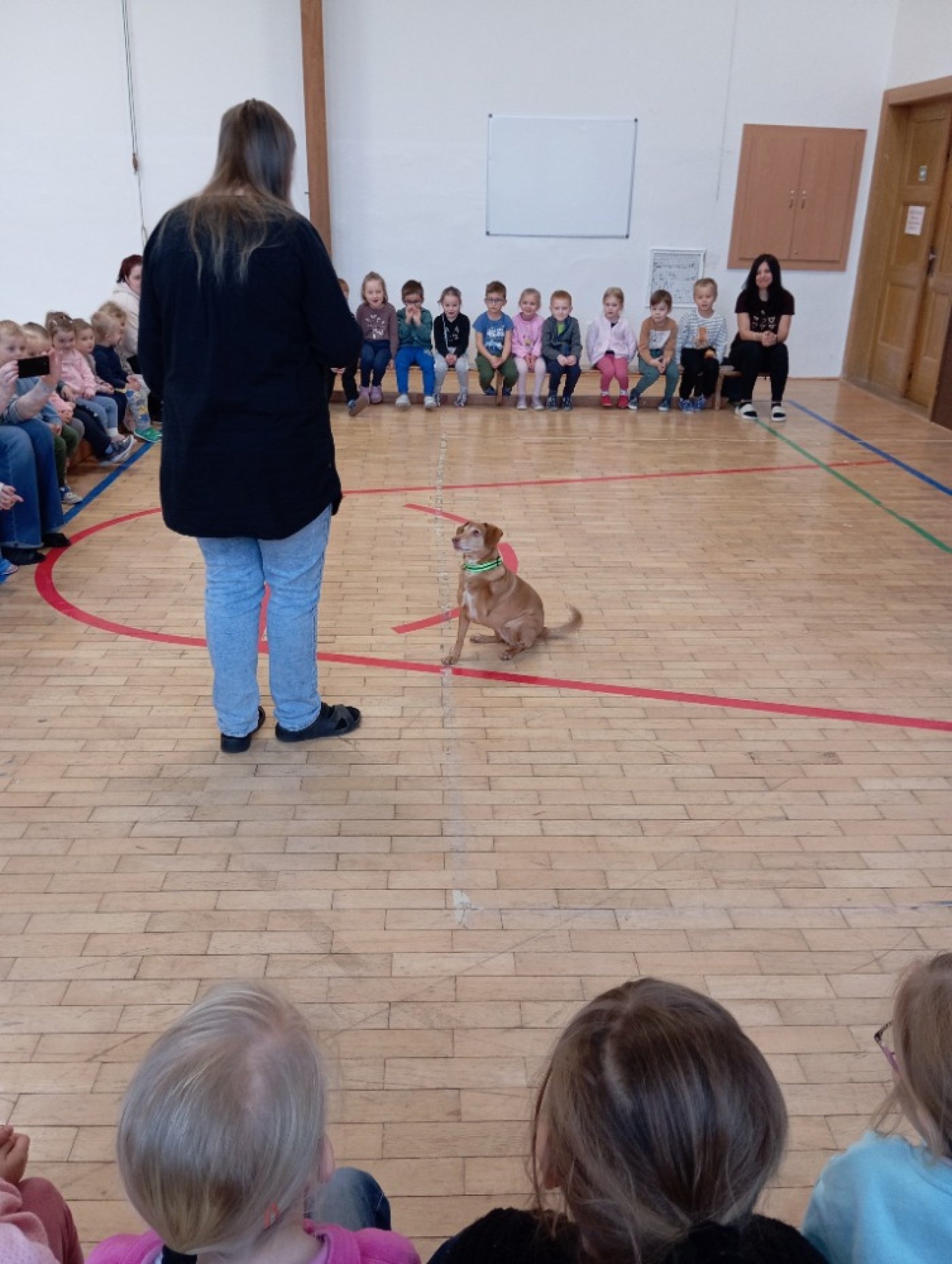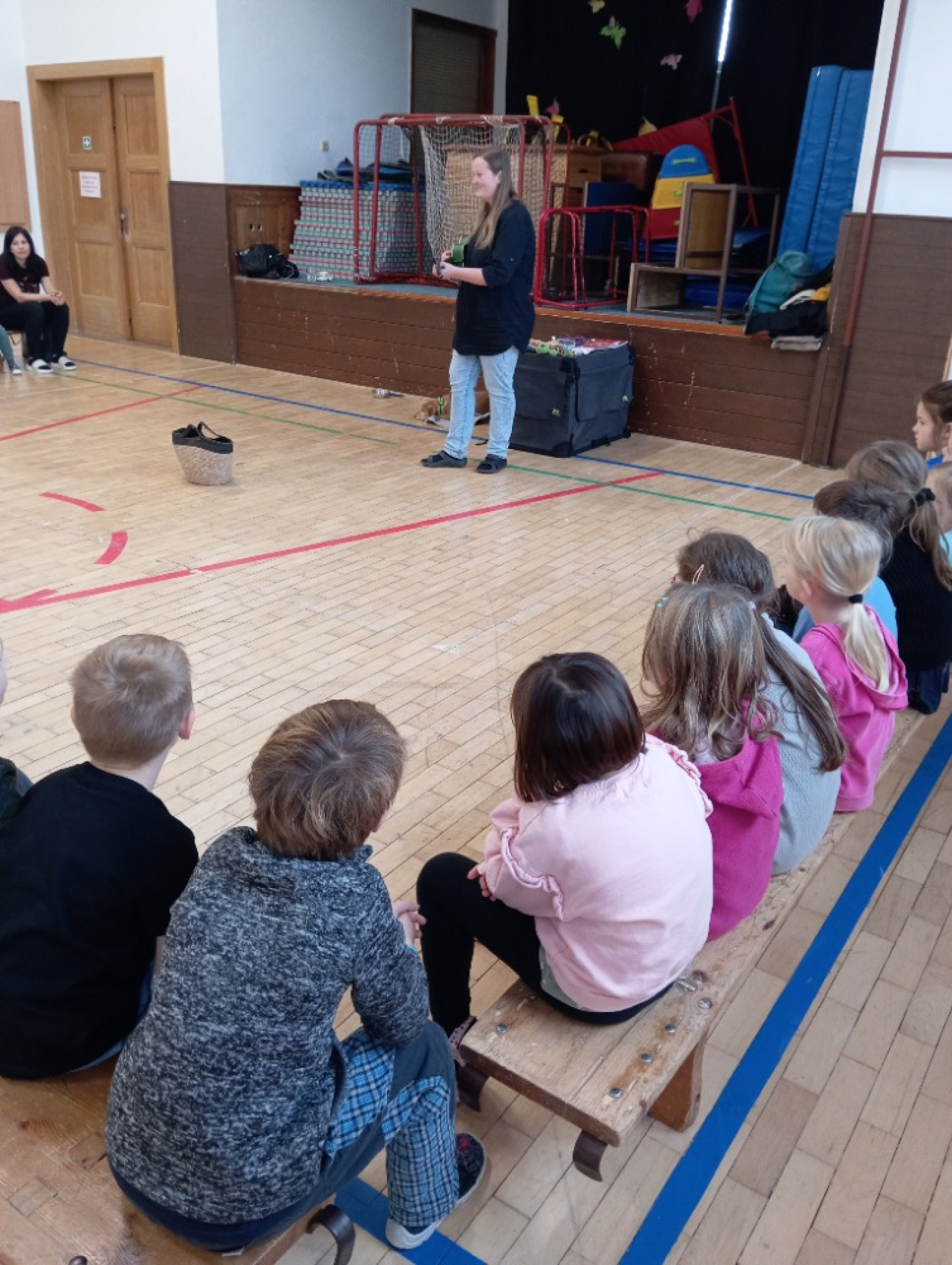 Druhá část programu patřila malé fence, která se jmenovala Terezka. Ukázala nám, co vše umí a na závěr si s ní děti mohly vyzkoušet základní povely. Za odměnu dostaly všechny děti malý dáreček – psí tlapku. Děkujeme za milou návštěvu!