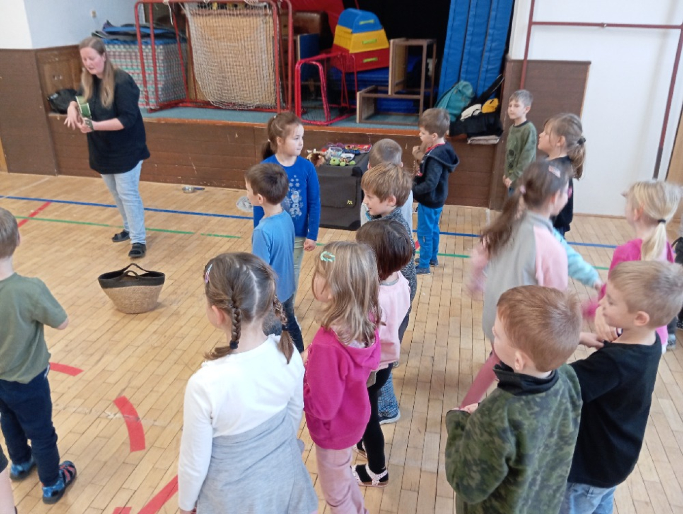 Dozvěděli jsme se spoustu zajímavostí o zvířatech. Žirafa, slon a lev nás v písničce i poučili: nekrmit zvířata, nekřičet, sbírat odpadky a lev děti nabádal, aby se nebály rozcvičky. Dokonce jsme si i zakouzlili. To bylo prima.