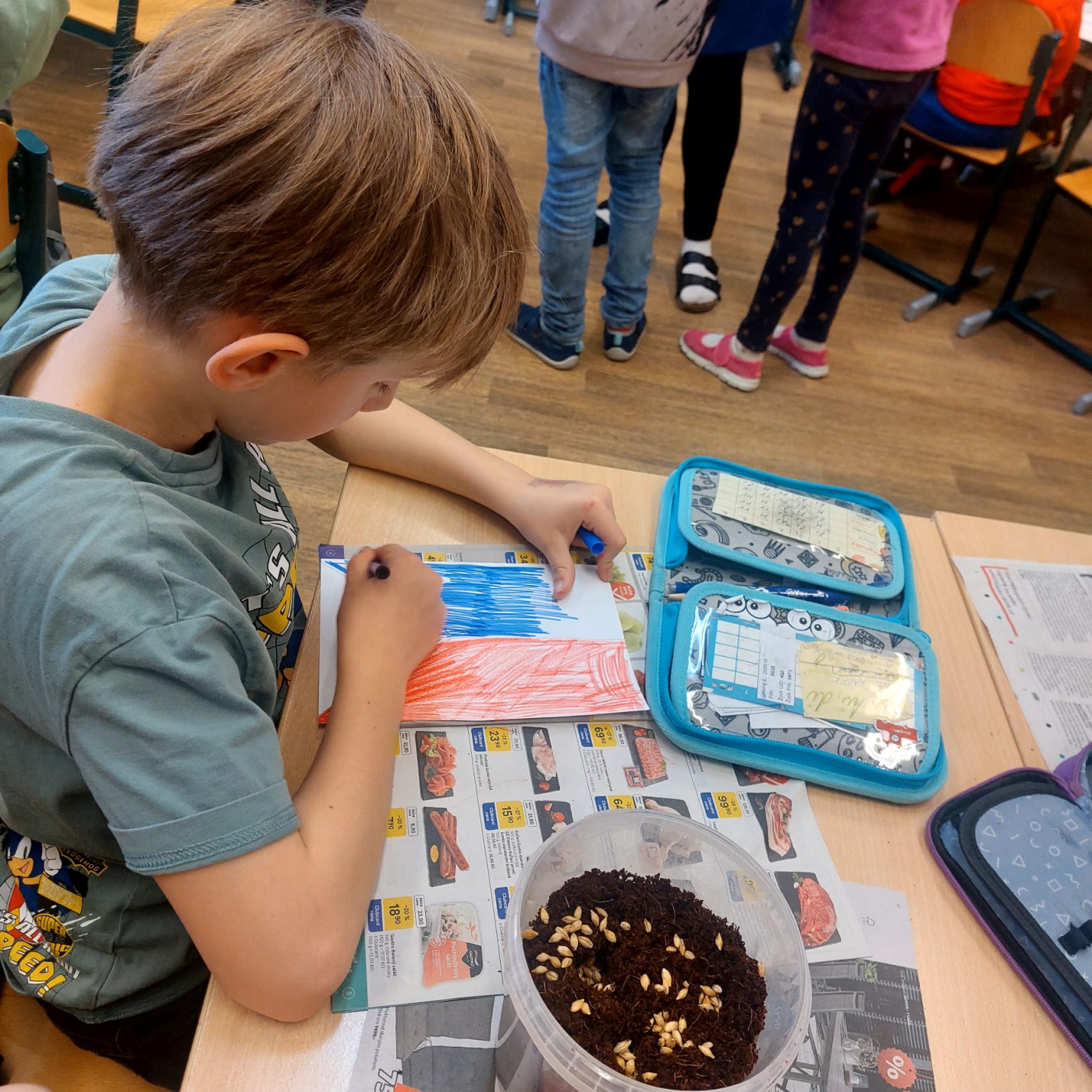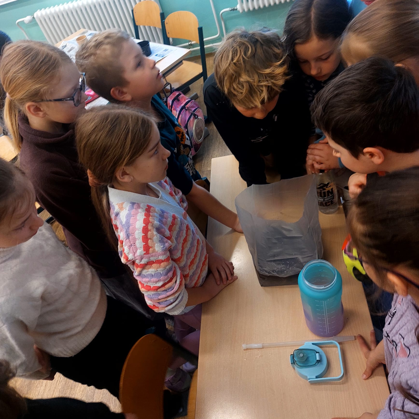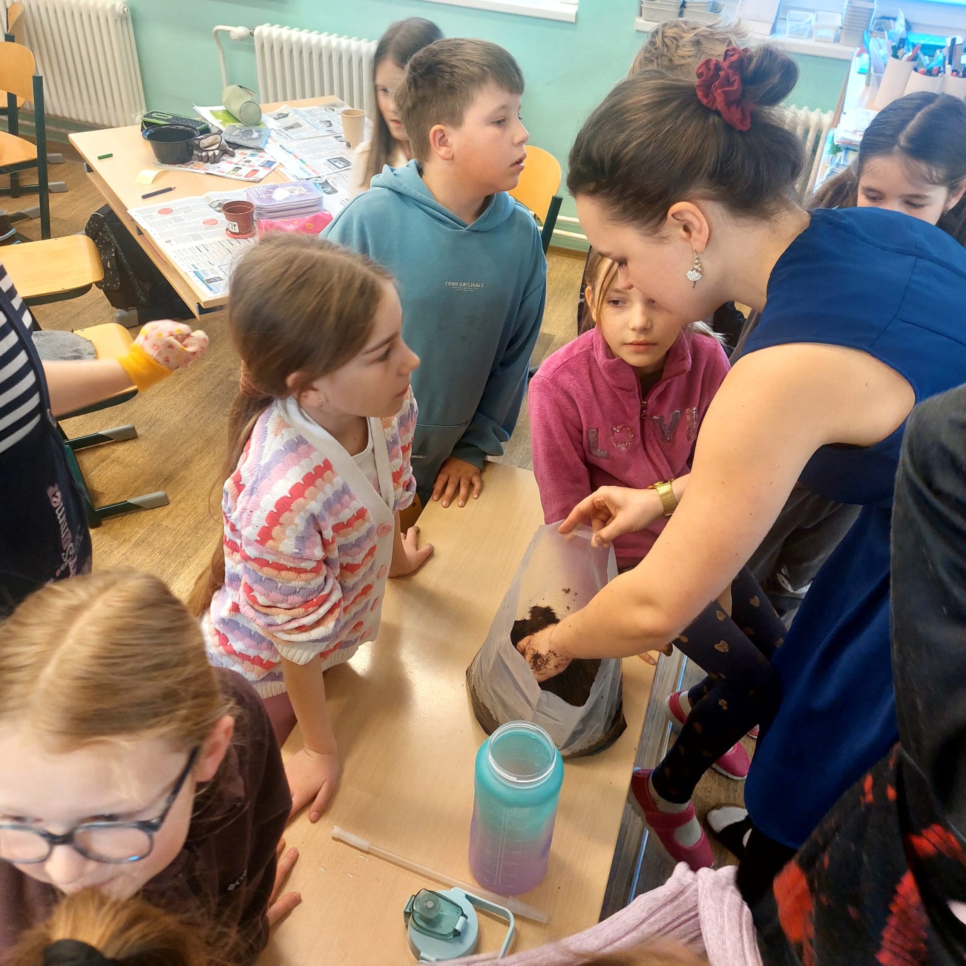Než jsme se pustili do samotného sázení osení, vyzkoušeli jsme si malý experiment se substrátem. Děti s úžasem sledovaly, jak během pár minut nasál vodu a několikanásobně zvětšil svůj objem.