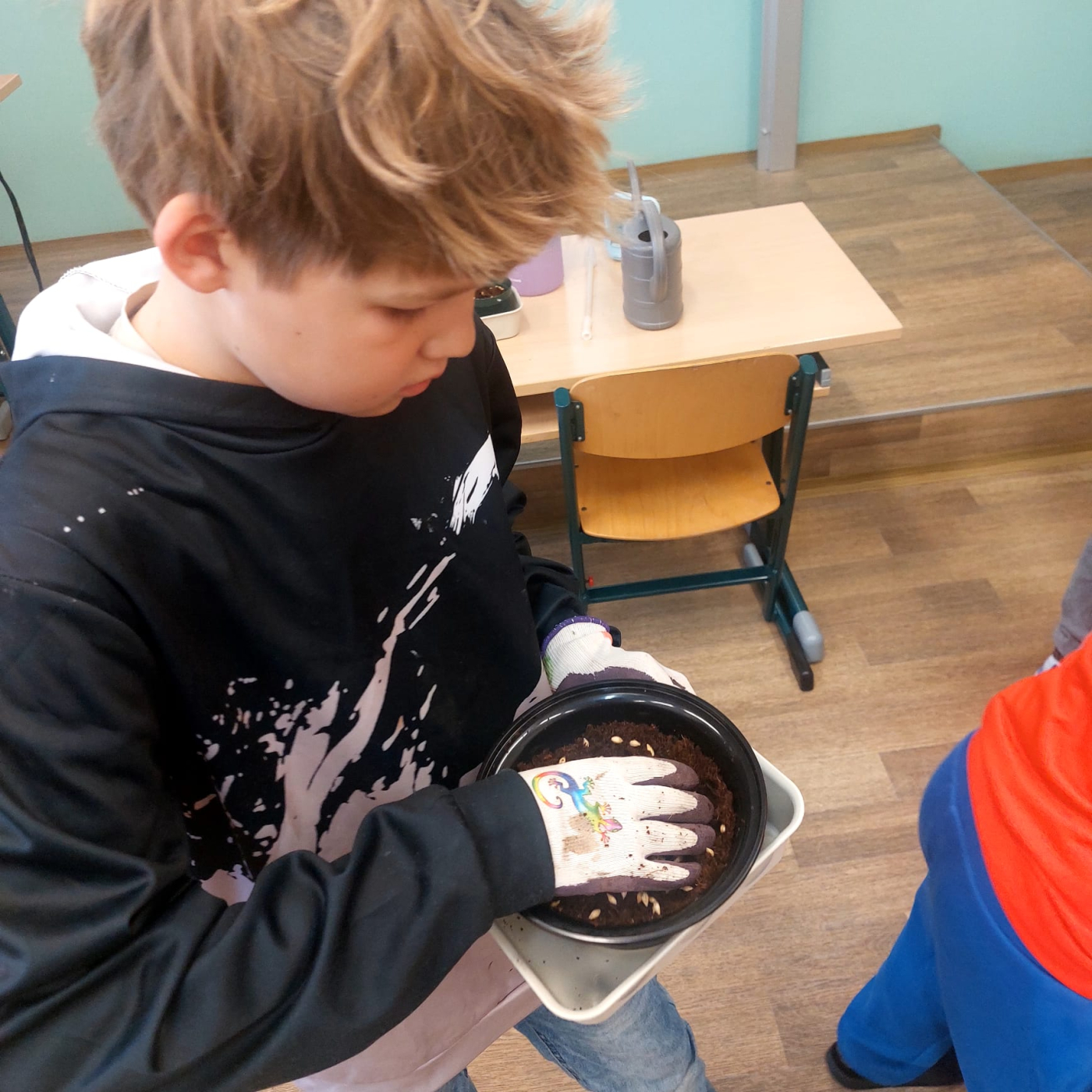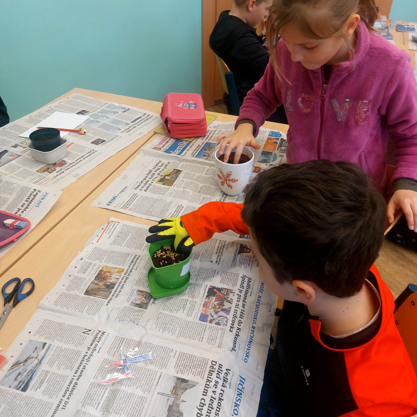 Poté už jsme se s chutí pustili do sázení a na závěr si každý svůj výtvor ozdobil papírovými dekoracemi na špejli. Děti si aktivitu moc užily a už se těší, až budou pozorovat, jak jim osení poroste.