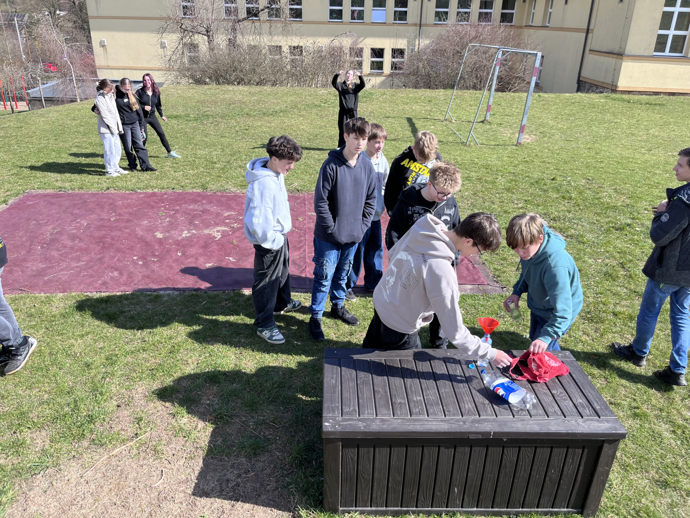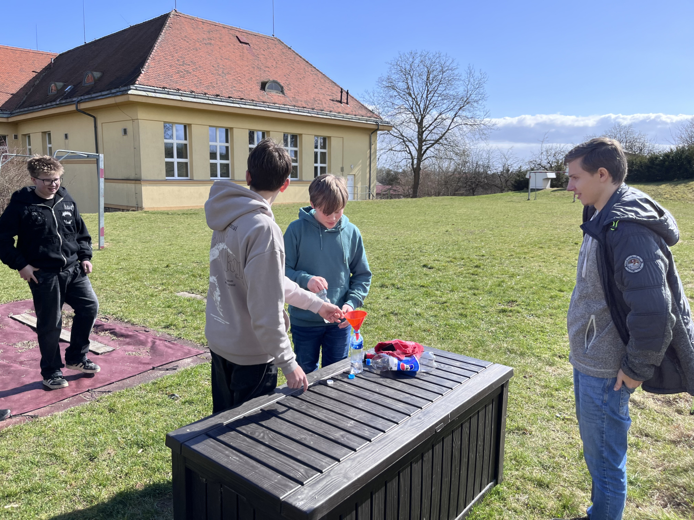 Žáci druhého stupně v rámci fyziky a chemie provádí vlastní pokusy. Jedním z pokusů, který si připravili osmáci na fyziku, byla lihová raketa. Lahev, která byla uvnitř mokrá od lihu, měla ve víčku díru a po přiblížení plamene se výpary vzňaly, což způsobilo odlet rakety.
