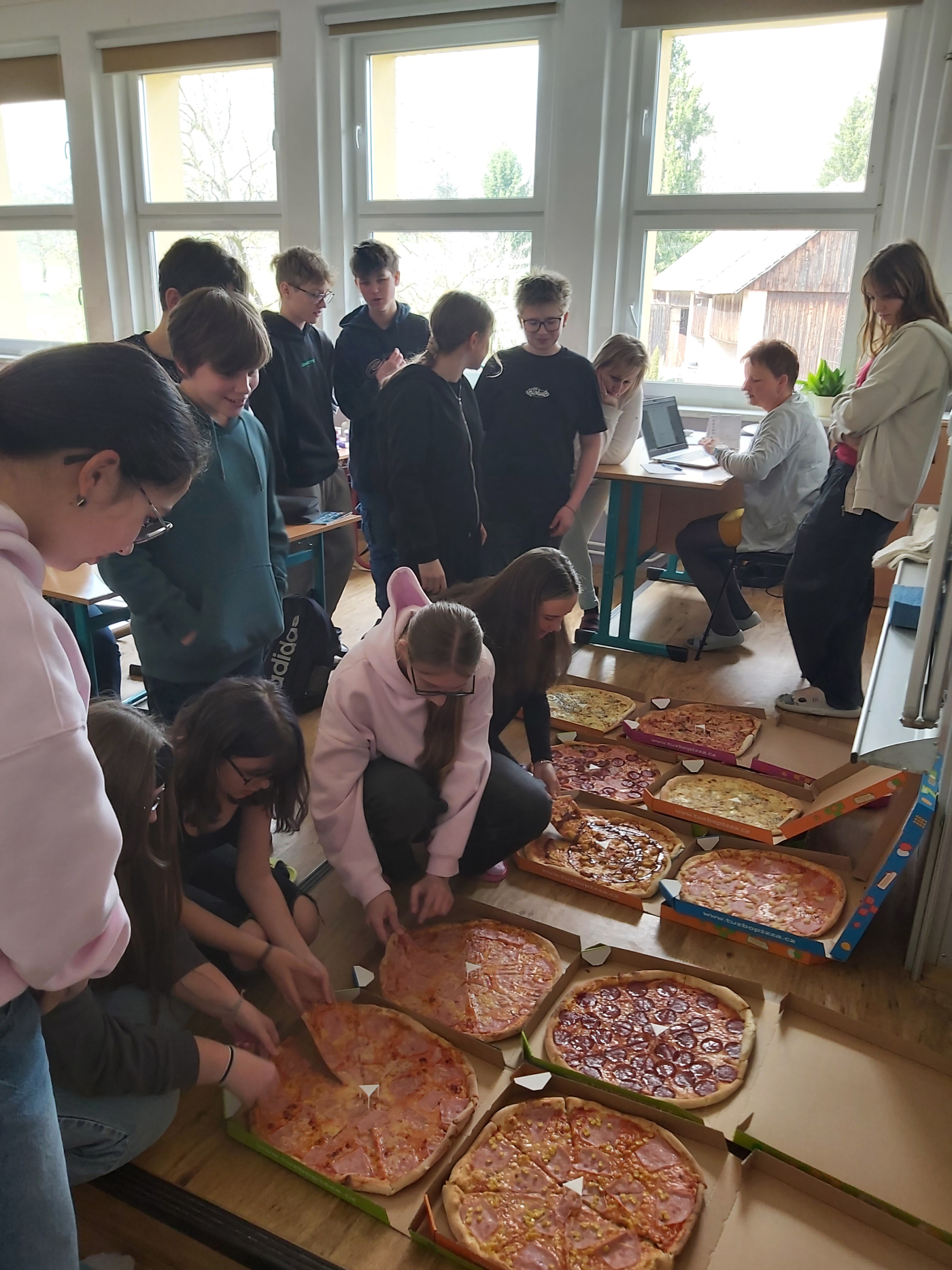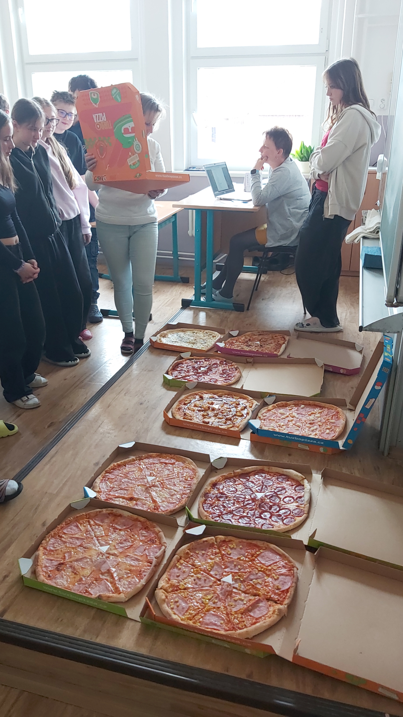 V pondělí si žáci 8. třídy naplno užili svou zaslouženou výhru s Turbo pizzou. Na třídnické hodině na ně čekalo hned 10 pizz, které rychle zmizely. Podle úsměvů bylo jasné, že všem moc chutnalo.