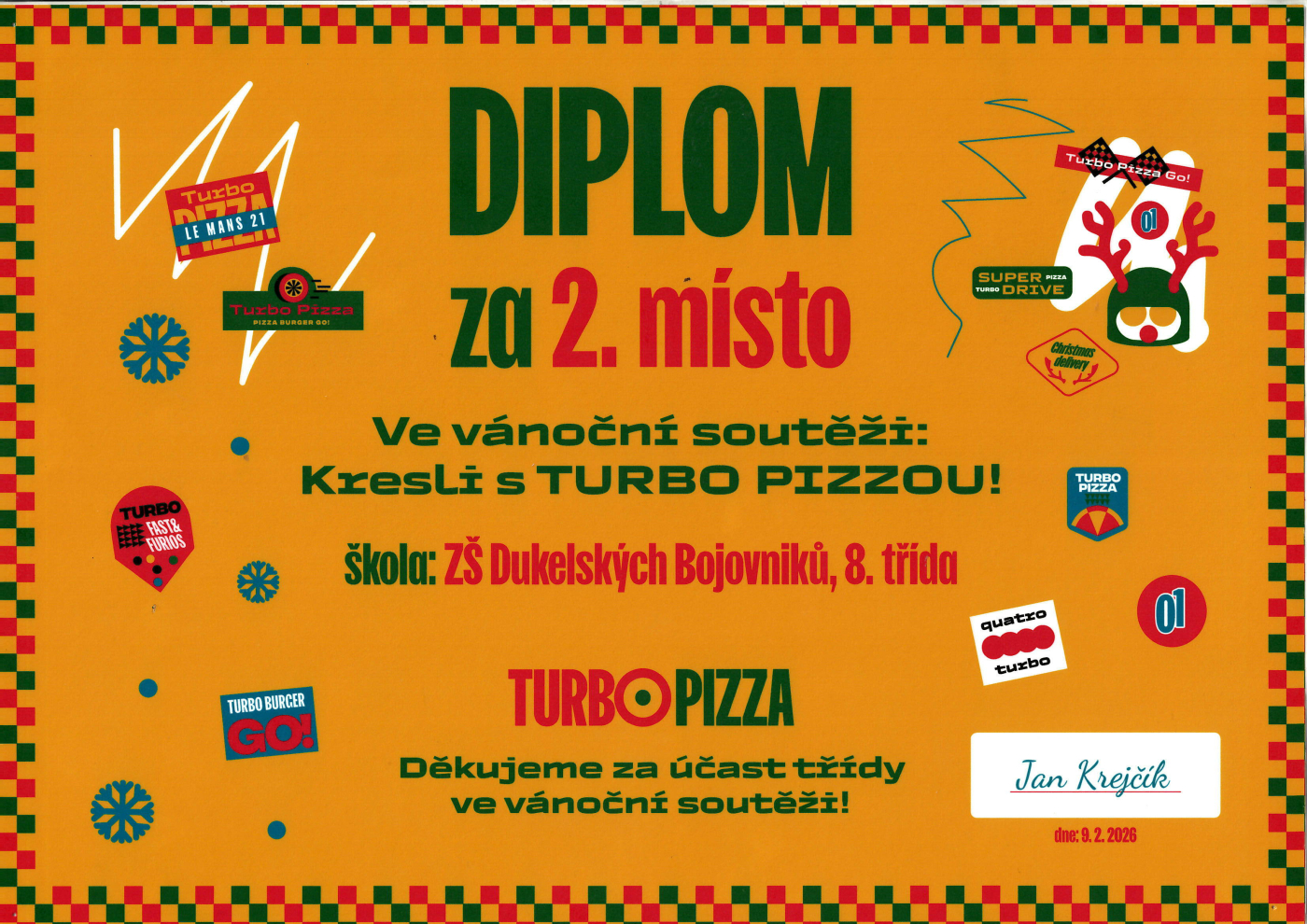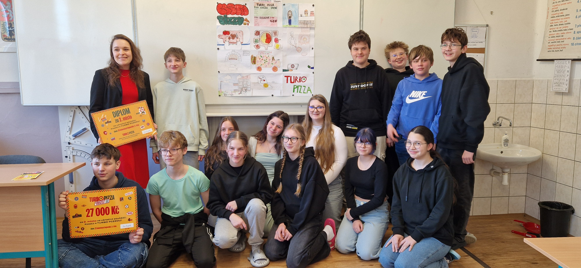 Žáci 8. třídy vybojovali 2. místo v celorepublikové výtvarné soutěži: Kresli s Turbo pizzou!